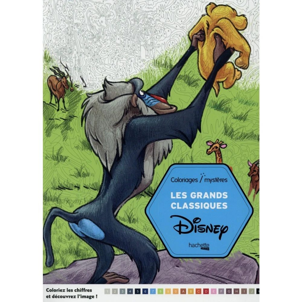 Des coloriages (100 scènes à colorier) sur des scènes mythiques des dessins animés Disney, à réaliser grâce à des codes couleurs.