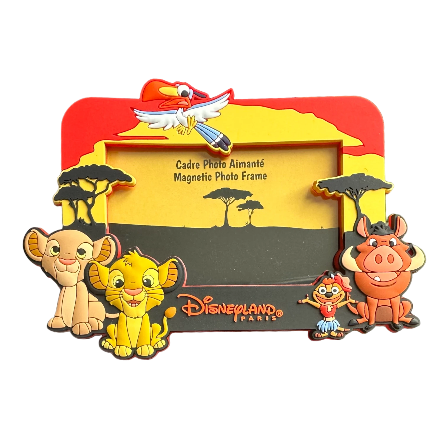 Ajoutez une touche de magie du Roi Lion à votre espace avec ce magnet cadre aimanté. Ce magnet coloré met en valeur les personnages bien-aimés de Simba, Nala, Zazu, Timon et Pumbaa dans une illustration vibrante et détaillée.