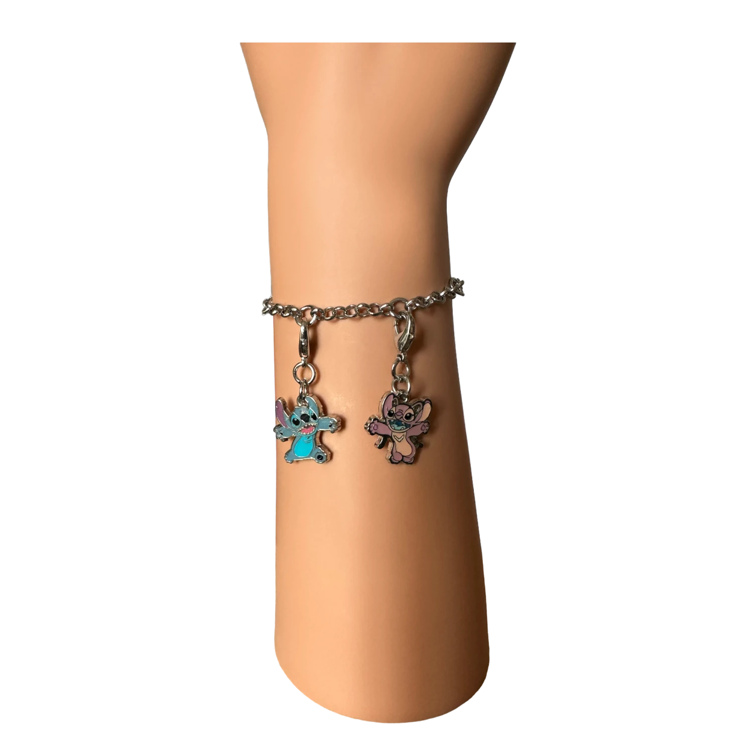 Découvrez notre bracelet breloque mettant en vedette les adorables Stitch et Angel du film Lilo et Stitch. Un bijoux fantaisie livré avec 3 charms, parfait pour les fans de Disney.