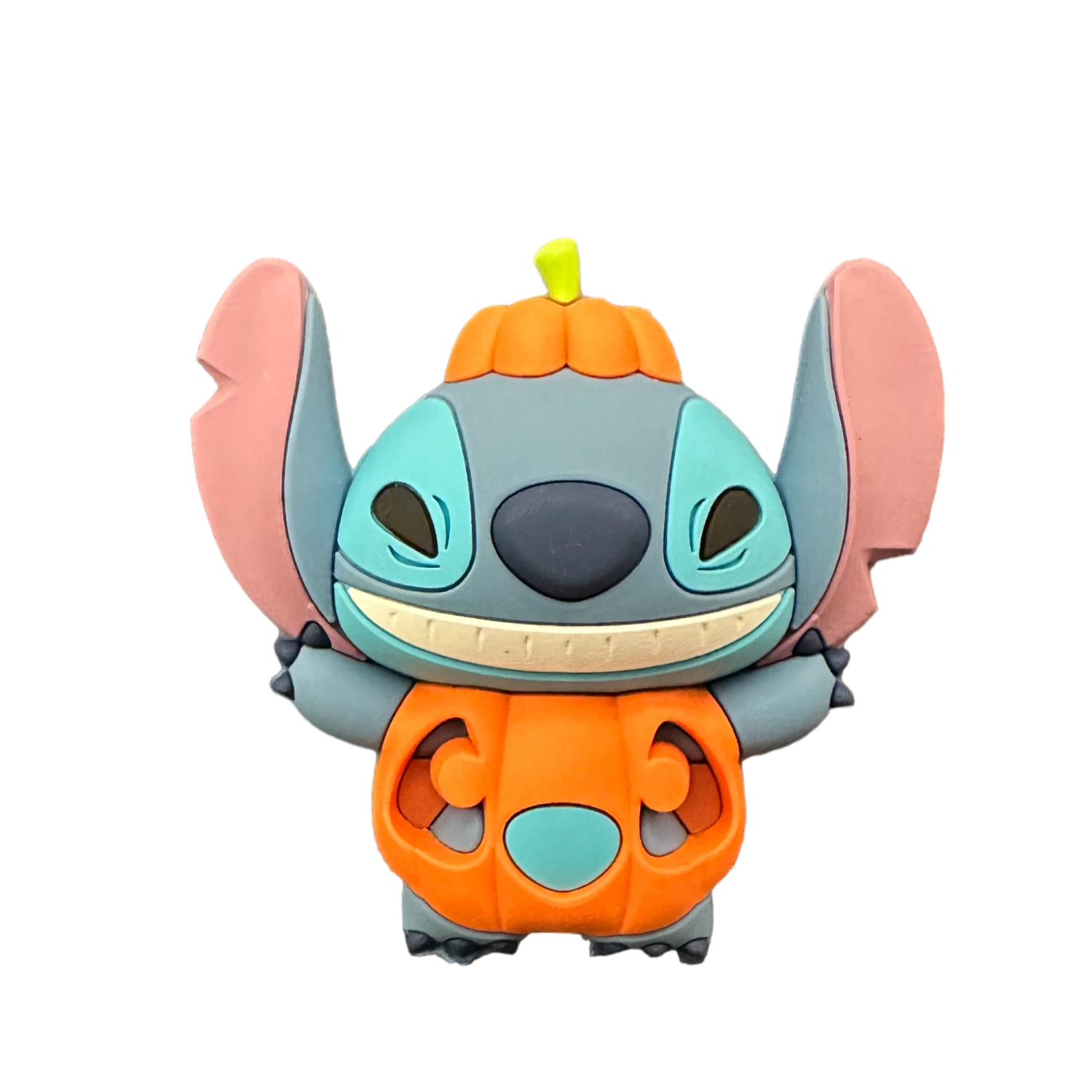 - Stitch en Citrouille : Ce magnet met en scène Stitch, l’adorable extraterrestre de Lilo et Stitch, déguisé en citrouille d’Halloween. Sa petite bouille espiègle et son costume coloré ajoutent une note joyeuse à n’importe quelle surface magnétique.