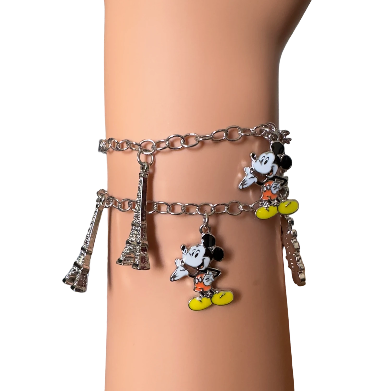 Renforcez vos liens d’amitié avec notre Lot de 2 Bracelets BFF mettant en vedette Mickey Mouse. Ces bracelets breloques en métal incluent des charms représentant Mickey, la Tour Eiffel et l’acronyme « BFF », créant une déclaration élégante d’amitié.
