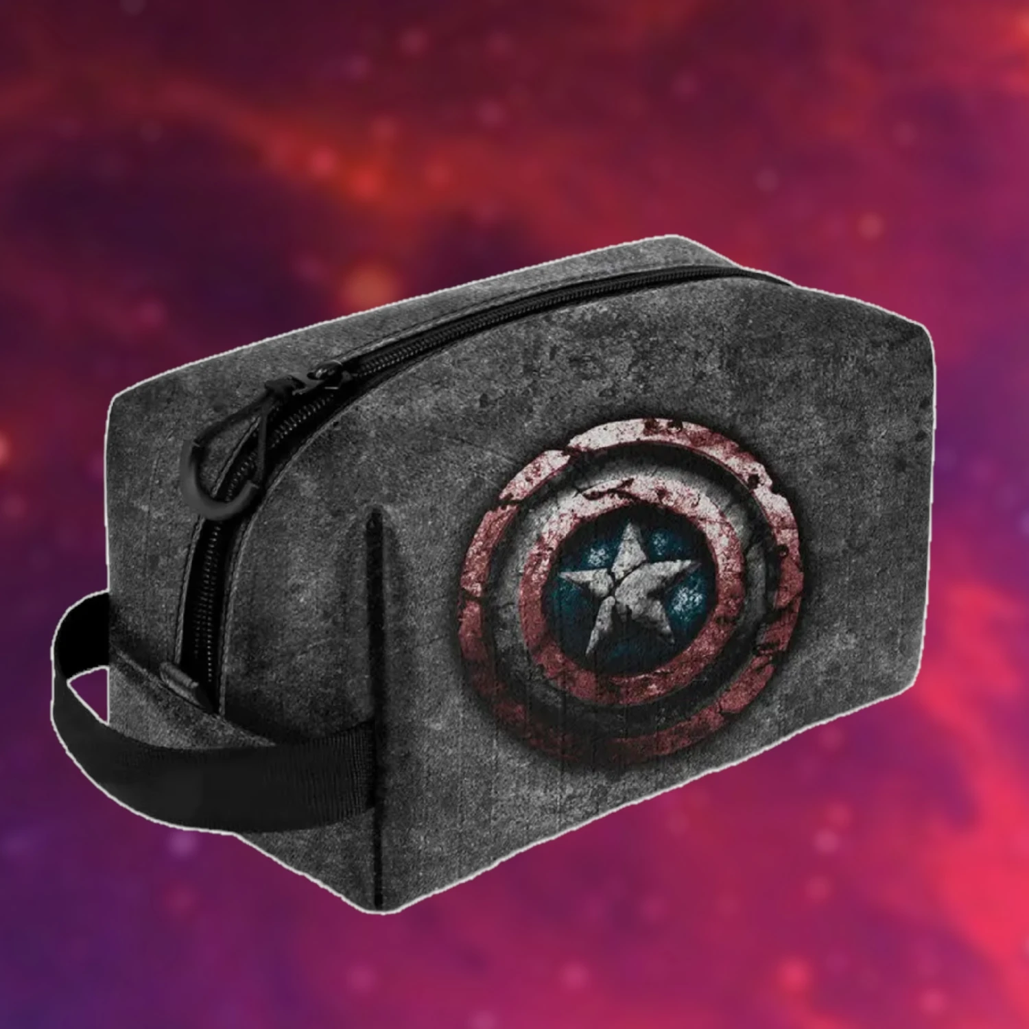 Ce vanity case est orné de l’emblématique logo de Captain America et présente un design inspiré des couleurs emblématiques du super-héros.